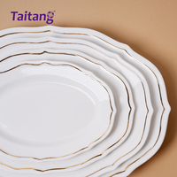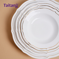 Hotel Restaurant Wedding Party Gold Rim Plates Set Ceramic Porcelain Gold Rim Dinnerware Set