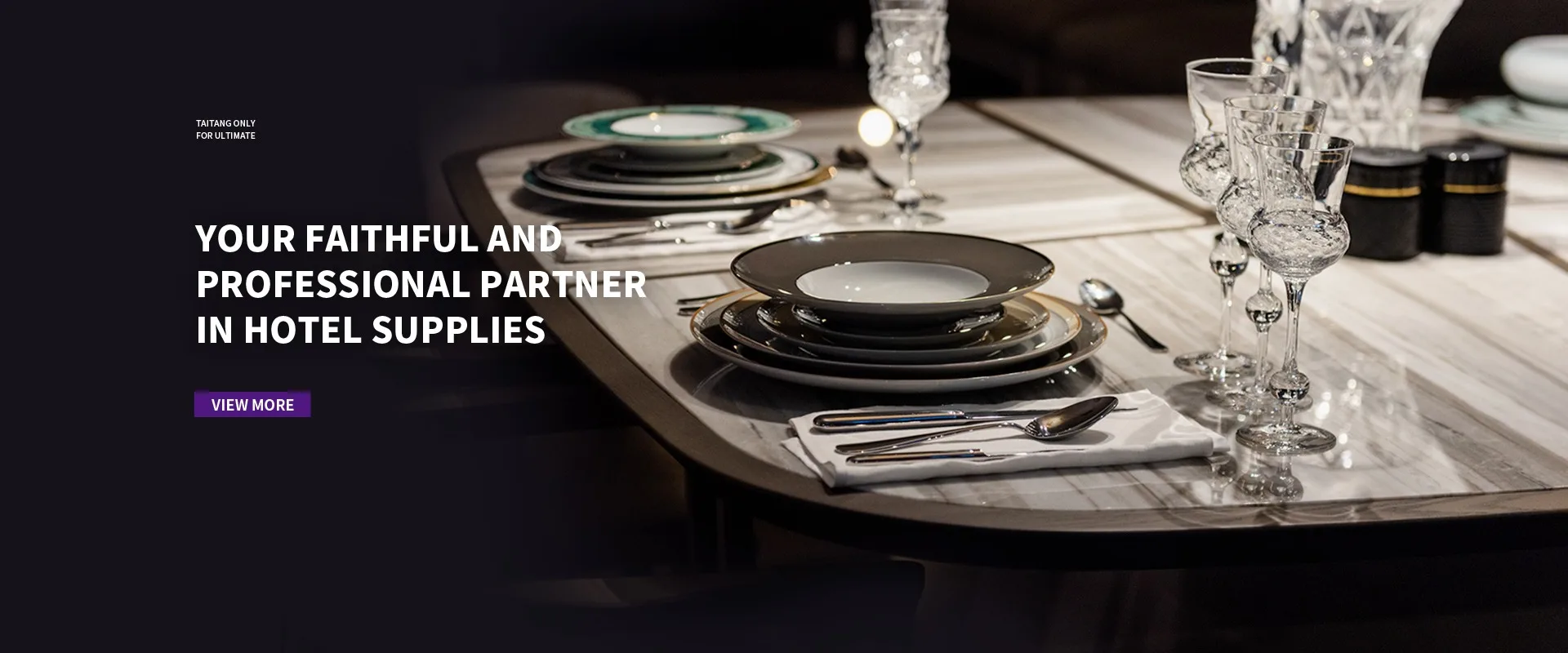 Taitang, established in 2008 and located in Guangzhou, China, is a comprehensive enterprise from manufacturing to trading with a core philosophy of "Products + Delivery + Service". Partnering with many leading brands in hotel & catering industry, we specialize in providing a wide range of hotel supplies, such as porcelain & glass & stainless steel table wares, kitchenwares and equipments, guestroom amenities, guestroom linen, catering linen, public area amenities and banquet furniture etc. to customers. Taitang is always dedicated to provide higher value and high quality services to our customers.