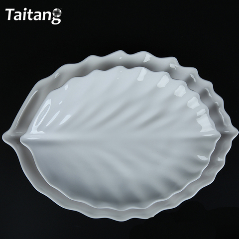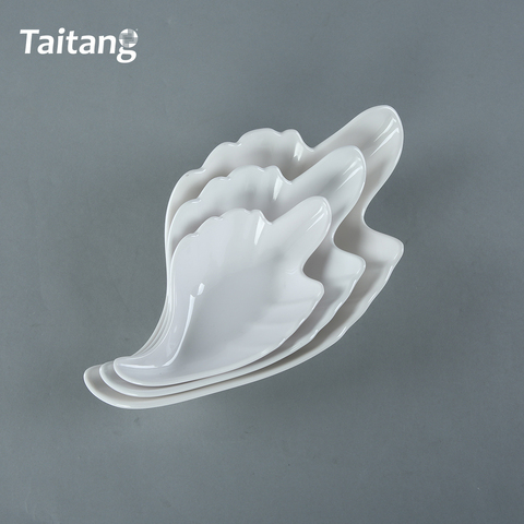白い葉の形をしたメラミンディナープレート