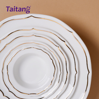 खानपान रेस्तरां की आपूर्ति निर्माता सोने रिम शैली सिरेमिक चीनी मिट्टी बरतन 8 इंच सफेद सूप प्लेट